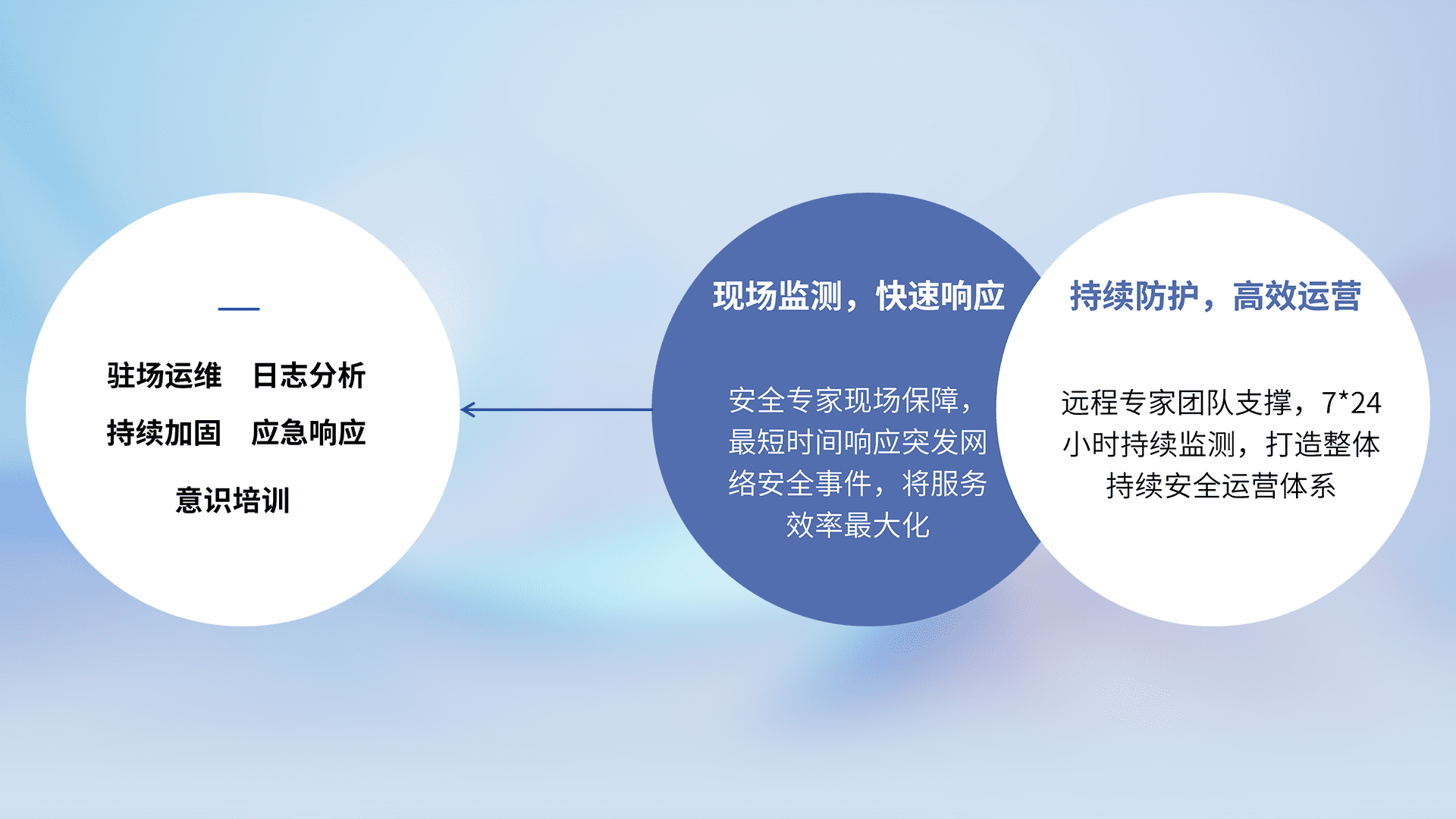 针对客户行业特性,,以专业的安全服务+多厂商联合解决方案提供专属的一站式安全管理服务,,,帮助客户全面感知网络空间威胁,,,,基于识别、、、、检测、、分析、、防护、、、监测、、、响应的服务理论模型,,从方案咨询、、、集成交付、、评估验证、、、优化加固、、、运维运营,,,致力于为客户提供完整的闭环管理式安全服务。。以实战经验为客户打造高抵御风险的安全体系,,,,帮助客户发现威胁、、对抗威胁、、、、处置威胁,,,,不断积累安全对抗能力,,持续保障数字化安全。。